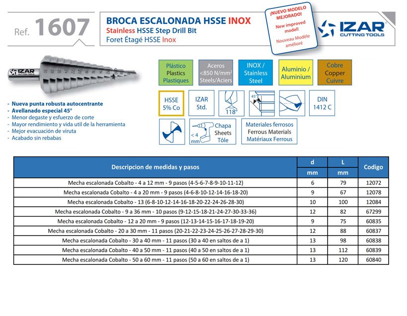 Si necesitas perforar mas de 4mm de profundidad tenes las mechas individuales de cobalto modelo 1016 en diametros de 0.50mm hasta 20mm.