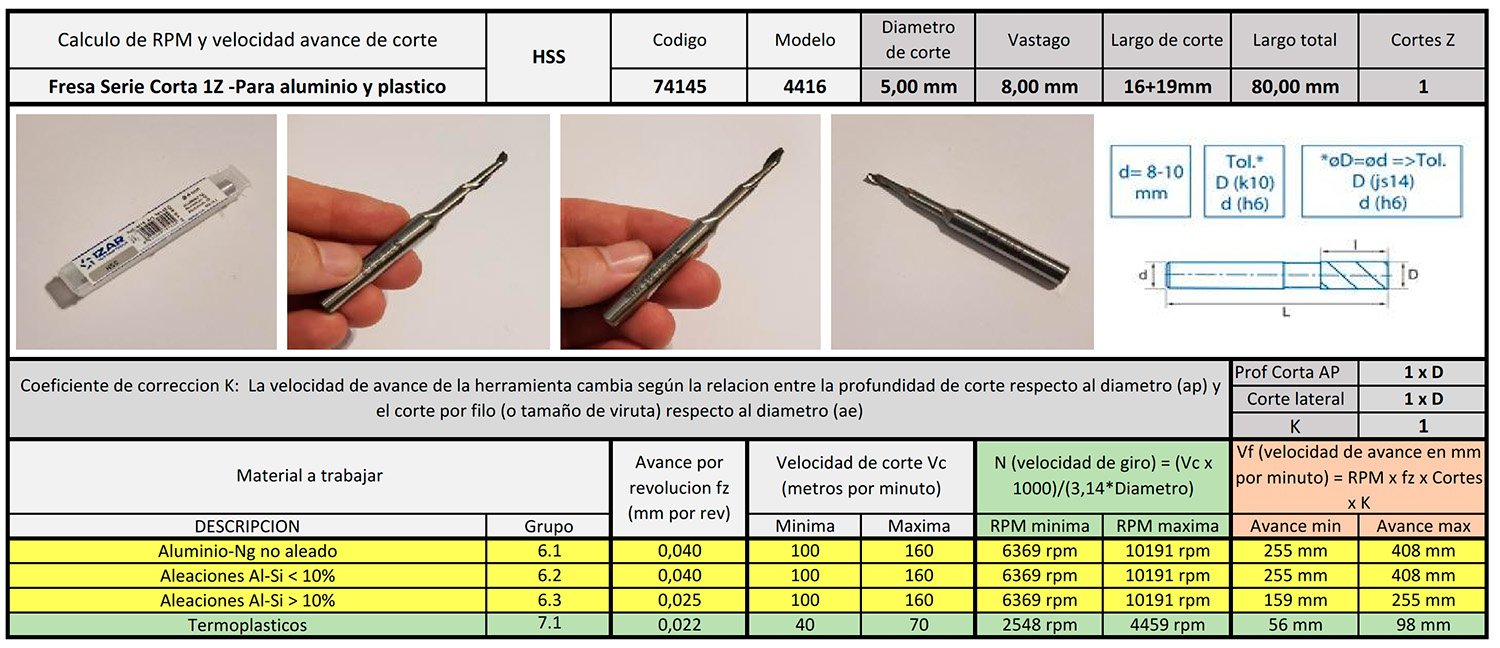 Fresolin de acero rapido calidad industrial especial para trabajar perfileria de aluminio/PVC con diametros de corte de 5mm, corte util 35mm (16mm de helice + 19mm de cuello), 80mm de largo total y vastago de 8mm.